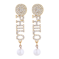 Sang Trọng 18K Vàng Tone Bling Và Ngọc Trai Trang Trí Hy Lạp Sgrho Chương Philo Biểu Tượng Thiết Kế Sorority Phụ Nữ Đồ Trang Sức Thả Bông Tai