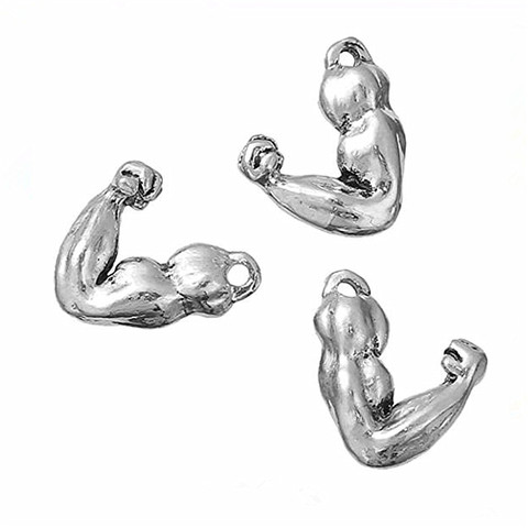 Design 3D en métal plaqué argent antique Muscle Man Charm Gym Fitness Inspire Pendentifs Bijoux pour la fabrication de bracelets et de colliers