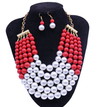 Hadiah dekorasi pesta kalung Choker lima lapis trendi Boho kalung Chunky manik-manik merah putih untuk wanita
