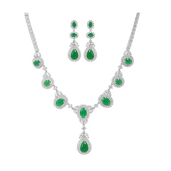 Tetesan Air Mata Batu Mewah Berlapis Emas Putih Berlian Pengantin Kalung Anting-Anting Set Pernikahan Wanita Hadiah Dekorasi Perhiasan Kustom