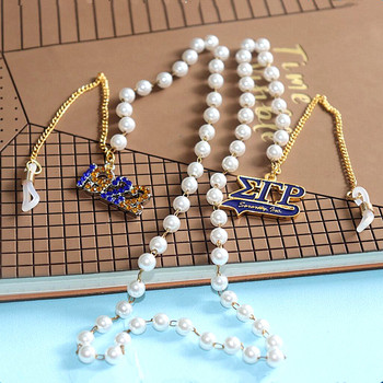 Nuovo Design perla catena lettera greca simbolo sorellanza Sigma Gamma Rho 1922 fascini occhiali cinghie cordino catena