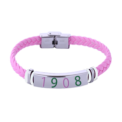 Paslanmaz çelik ve deri yapma rity rity alfa ilham tasarım pembe ve yeşil ton kurucu yıl 1908 Pretty kız bileklik