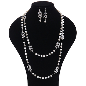 Lüks yüksek kaliteli taklit krem inci yapma 5 ipliklerini bildirimi kolye ve Dangled küpe kadın takısı takım