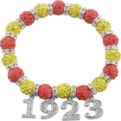Büyüleyici sarı ve kırmızı disko topu boncuklu Sorority Phi Delta Delta Sorority kurucu yıl Bling 1923 takı kadın bilezik