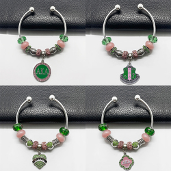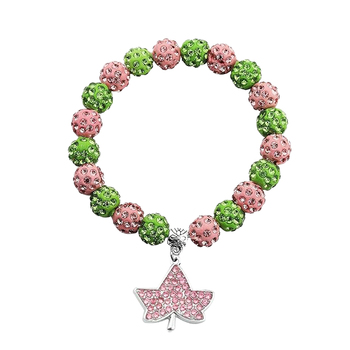 Sẵn Sàng Để Tàu Hy Lạp Alpha Biểu Tượng Màu Hồng Và Màu Xanh Lá Cây Pha Lê Đính Cườm Đồ Trang Sức Bling Ivy Mặt Dây Chuyền Làm Sorority 1908 Phụ Nữ Vòng Đeo Tay